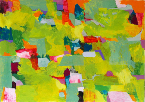Jag rör mig i en abstrakt bildvärld som hämtar inspiration från vandringar i landskapet och dagligt utövande av yoga och meditation.