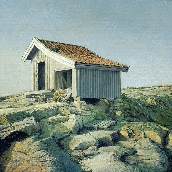 Nyfikenheten fick mig också att flytta utomlands till en främmande natur och landskap. Där började dock det svenska te sig exotisk i kontrast till vardagen i varmare klimat. Här i Bohuslän blev utmaningen att måla det hemtama med nya ögon. Att se det alldagliga som främling frammanar vördnad inför det förbisedda.
